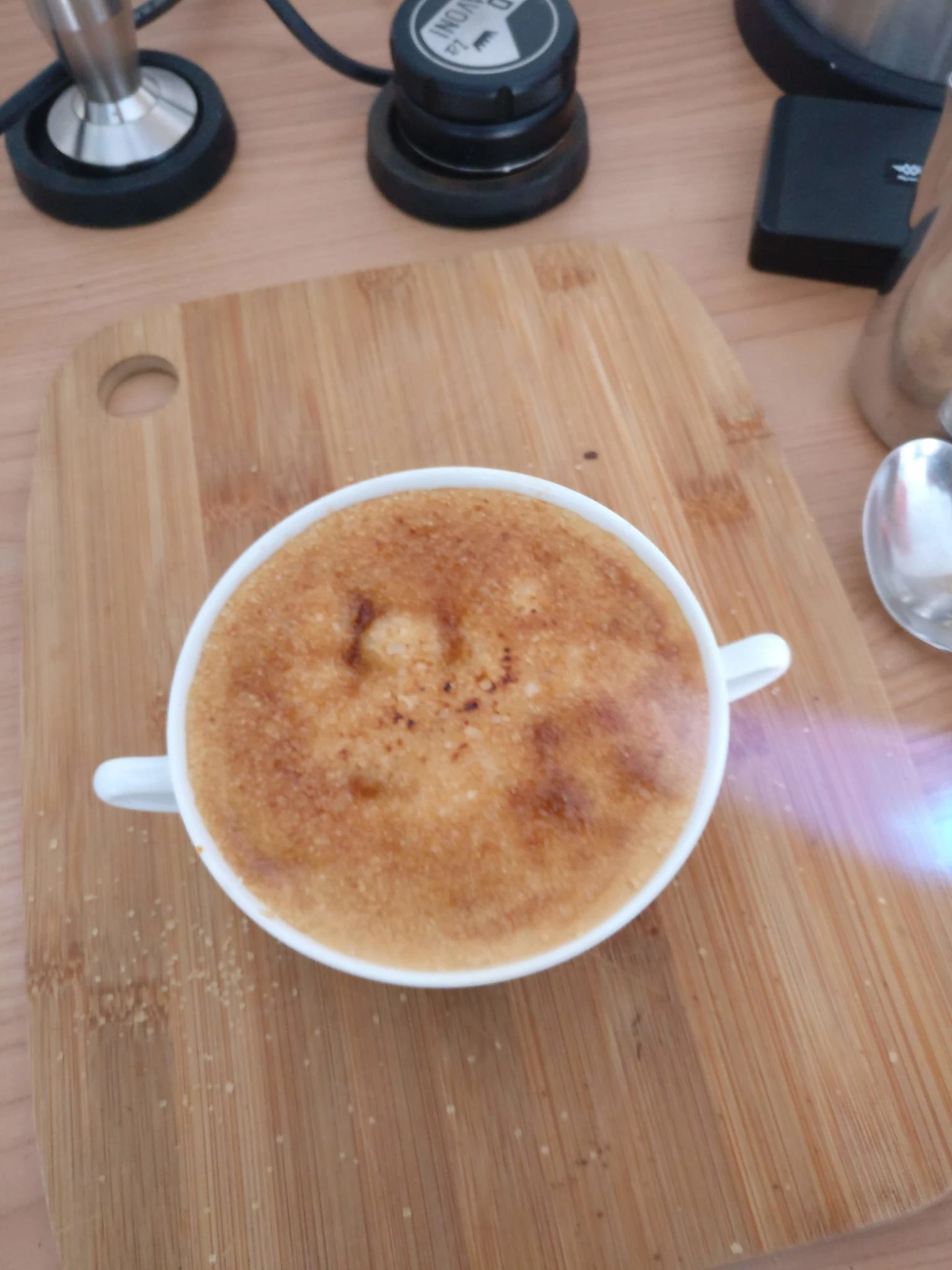 You'll get a latte with a thin crispy layer of caramel on the surface, which, when mixed with the coffee, will offer incomparable caramelized aromas.