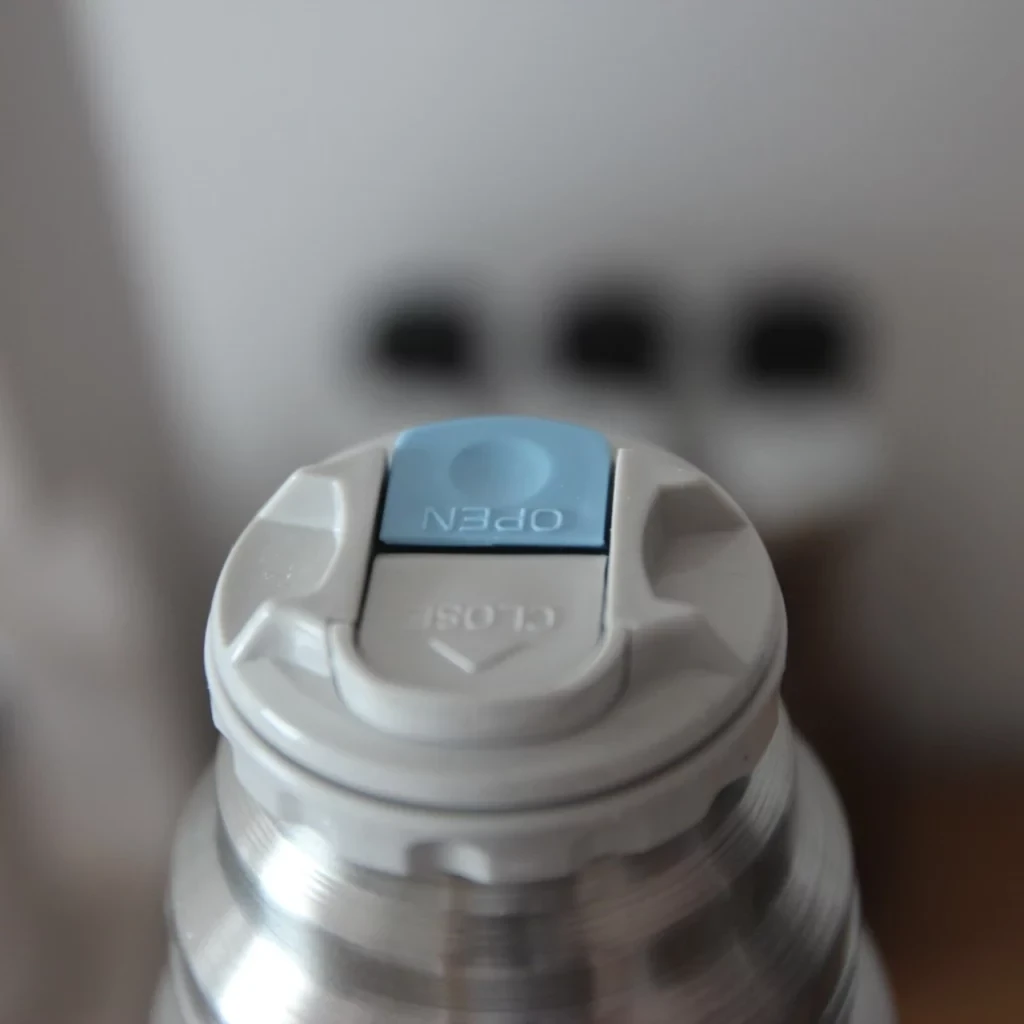 Regarding the drinking cap, it is well designed and gives an impression of quality. You can even easily disassemble it by unscrewing its upper part for cleaning. Additionally, the thermos closes completely thanks to a cap that can transform into a cup, which prevents the drinking cap from opening during transport.