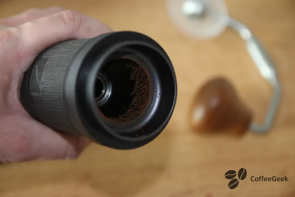 The external adjustment dial protrudes slightly, ensuring a solid grip that prevents the grinder from slipping out of your hands. This is an improvement over the Timemore Chestnut X, where I had noted this issue.