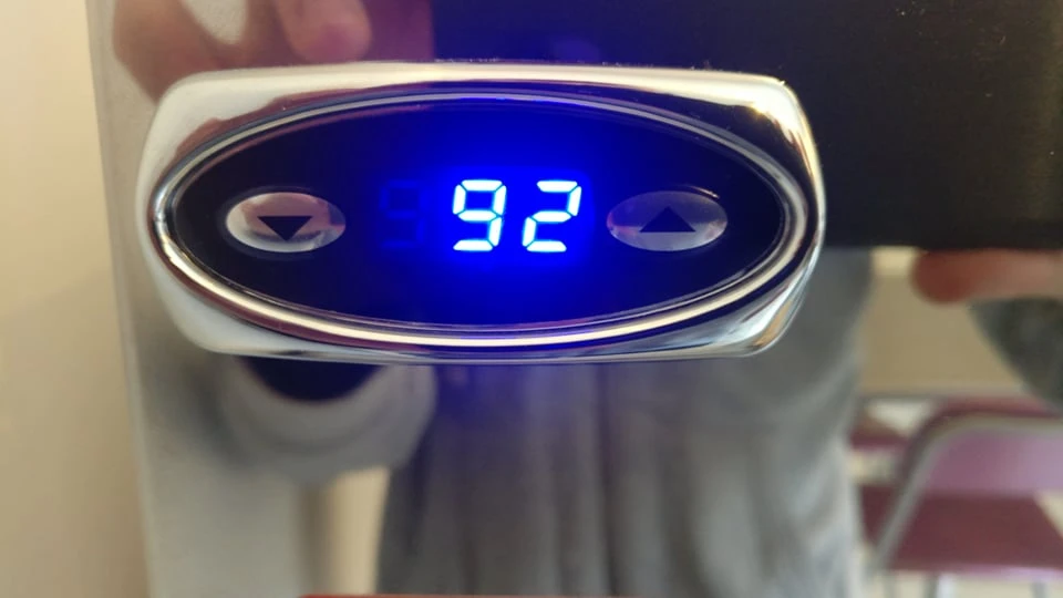 Temperature set to 95°C: the water first heats to 100°C then quickly drops back down.