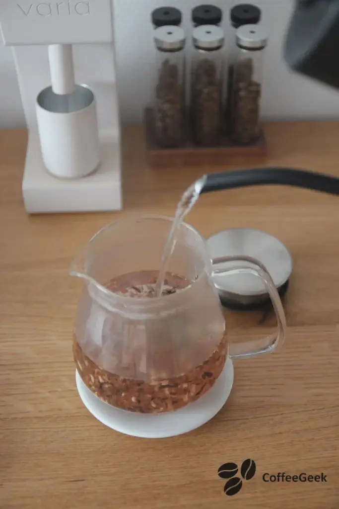 In fact, this wide opening allows transforming this teapot into a carafe for the Hario V60 affiliate link. Thus, with this Kinto, you have a 2-in-1 system allowing you to brew tea or coffee (provided you have a V60 or equivalent).