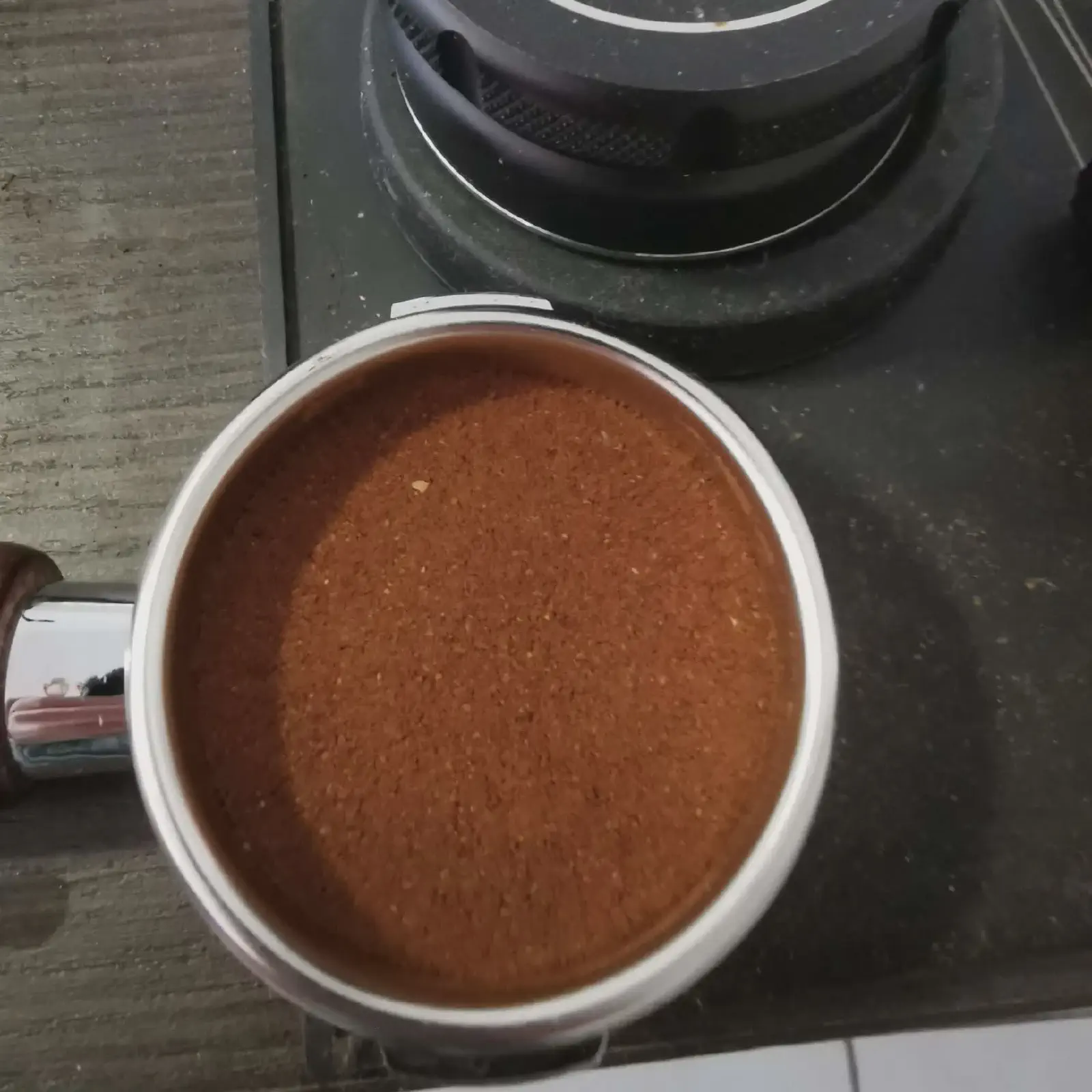 For a long time, I used a standard tamper purchased on Amazon for a few euros. Later, I invested in a model equipped with a guide, the Normcore V4 tamper, to ensure level tamping and consistently identical pressure.