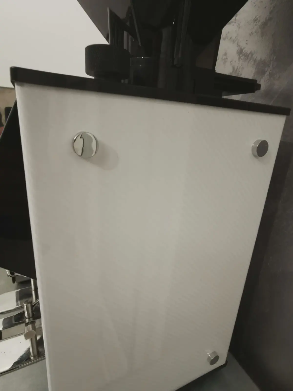 My model combines chrome and textured white. Even though I didn’t choose the colors (since the grinder had been used at the Milan show), I find this finish very elegant. The slightly damask white brings a unique touch, and the chrome is of beautiful quality.