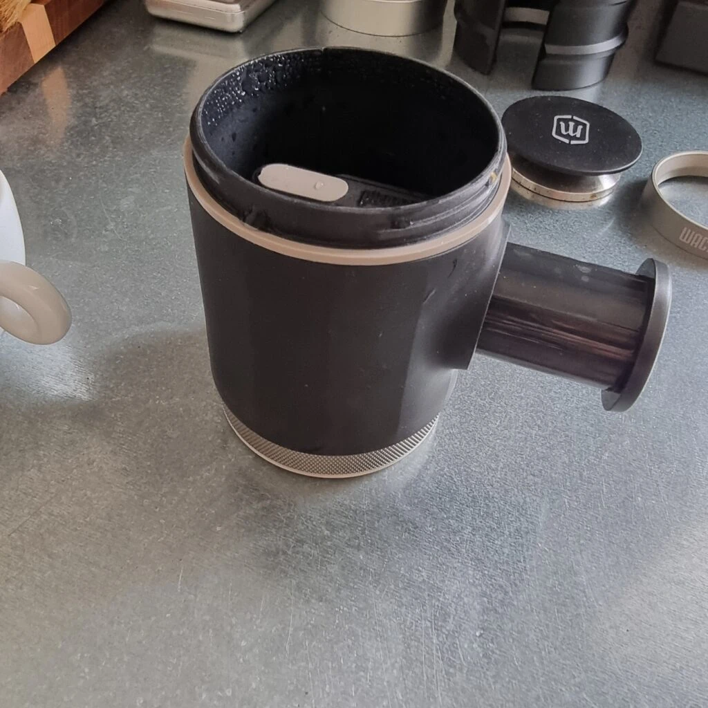 Cependant, à mon avis, le répartiteur fourni n'est pas idéal pour une utilisation fréquente. Je recommanderais plutôt d'investir quelques euros supplémentaires dans un WDT portable pour les voyages. Un outil WDT (Weiss Distribution Technique) permet une répartition homogène du café avant le tassage, contribuant ainsi à prévenir la formation de canaux (channeling) lors de l'extraction.