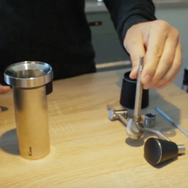Sur le Kinu M47, le café a tendance à coller au récipient, nécessitant de tapoter pour le détacher.