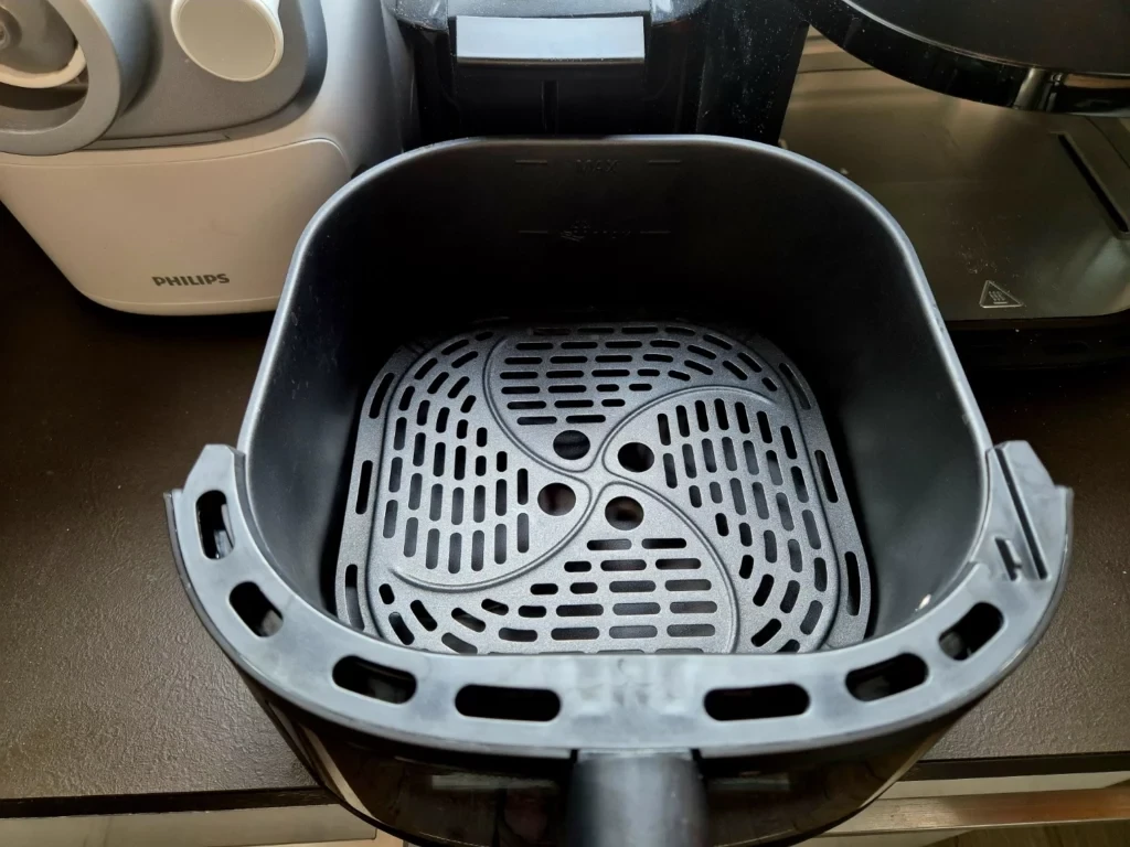Cassetto dell'AirFyer modello 6,2l. La griglia interna può essere rimossa per effettuare una pulizia completa.
