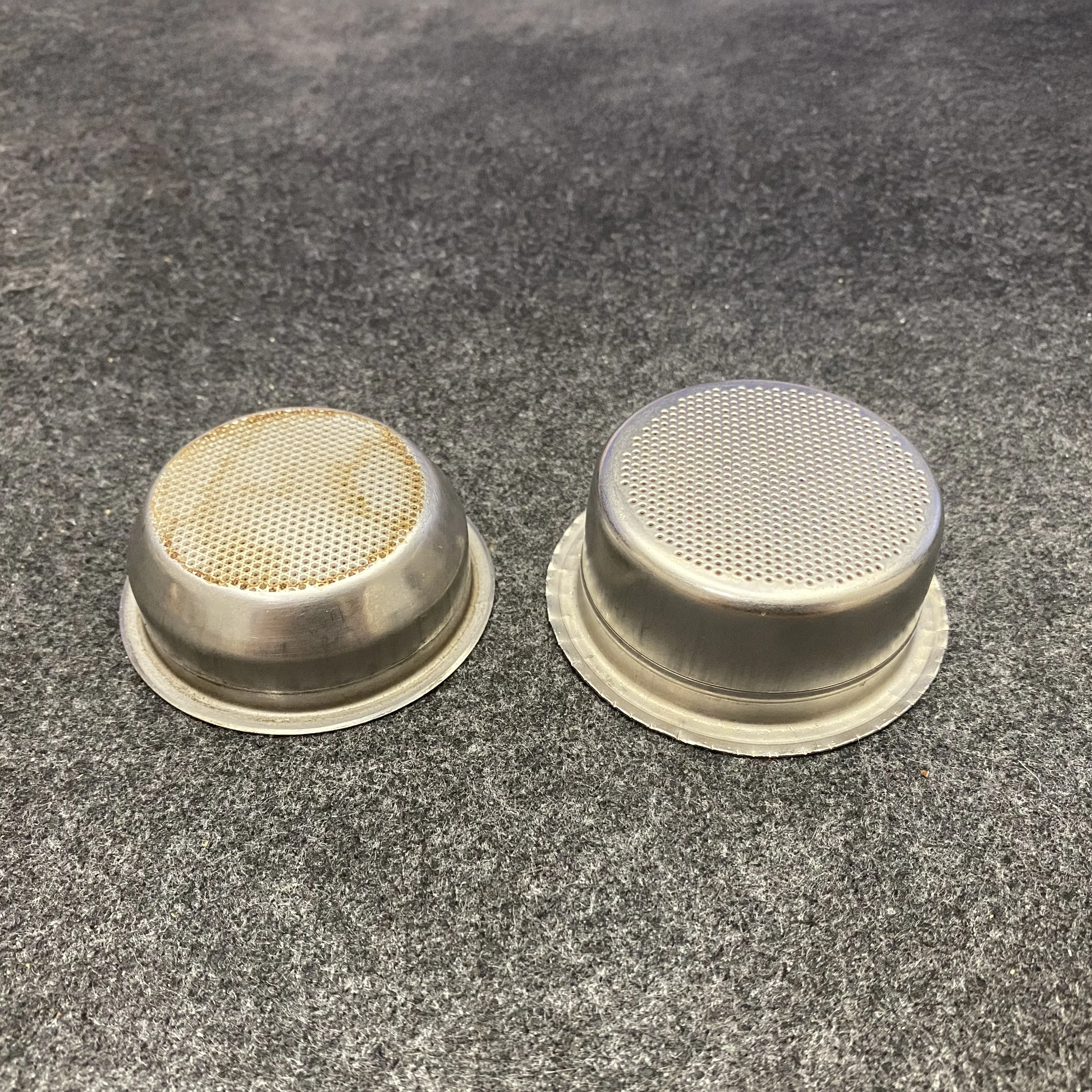 実際、大きな問題が残っていました:新しいバスケットは丸みを帯びたエッジを持っているのに対し、Quickmillグループは平らなエッジ用に設計されており、ポルタフィルターに完全に載るようになっています。また、新しいバスケットがポルタフィルターから約1.5mm突き出ていることに気づきました。これは挿入を妨げるものではありませんが、わずかに邪魔になります。