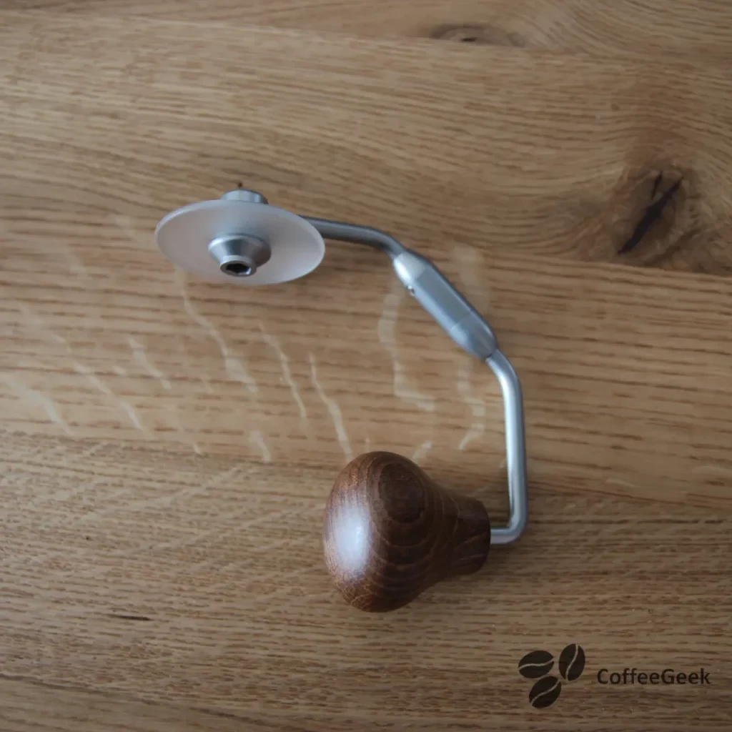 - グラインダー刃のサイズ:大きなグラインダー刃(47-48mm)は挽き時間を短縮します。例えば、小さなグラインダー刃(38-40mm)では、手挽きで約1分30秒かかります。47-48mmのグラインダー刃では、16gのコーヒーを挽く時間は約40秒です。
