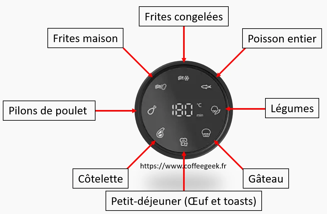 Aby gotować na gorącym powietrzu w trybie „frytownicy", wystarczy dodać odrobinę oleju na produkty spożywcze. W ten sposób uzyskuje się wygląd podobny do tradycyjnego smażenia bez zanurzania produktów w oleju. AirFryer pozwala rzeczywiście gotować z o wiele mniejszą ilością tłuszczu. Zaleca się mieszanie frytek w połowie czasu gotowania, aby uzyskać równomierne przygotowanie.