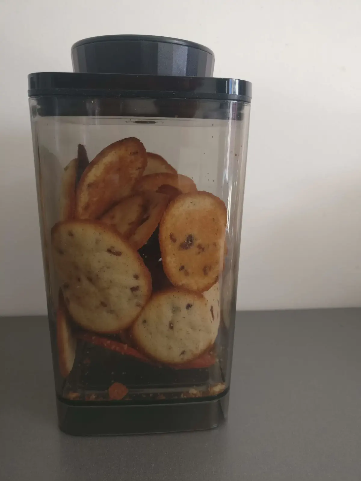 So I started looking for containers capable of removing air. The idea is simple: by reducing oxygen and moisture, food doesn’t oxidize and doesn’t soften.