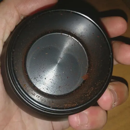 On the Kinu M47, the coffee tends to stick to the container, requiring tapping to dislodge it.