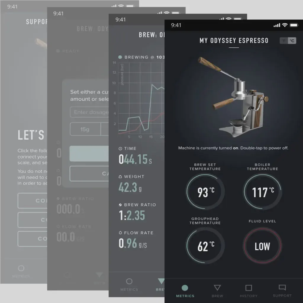 The Argos incorporates precise PID control, operated by a dial, ensuring constant thermal stability. The Odyssey Espresso app allows real-time monitoring of:
