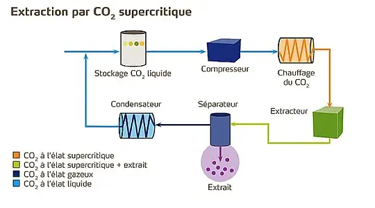 Here, CO₂ in a supercritical state acts as a solvent to selectively extract caffeine, without altering the aromas.