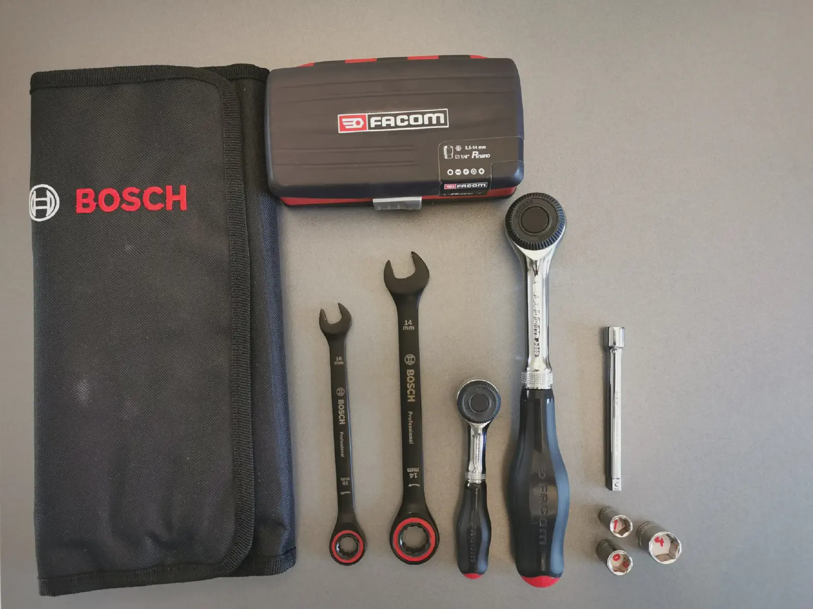 Three wrenches are needed: 9 mm, 10 mm and 14 mm (open-end wrench required for the 14 mm).