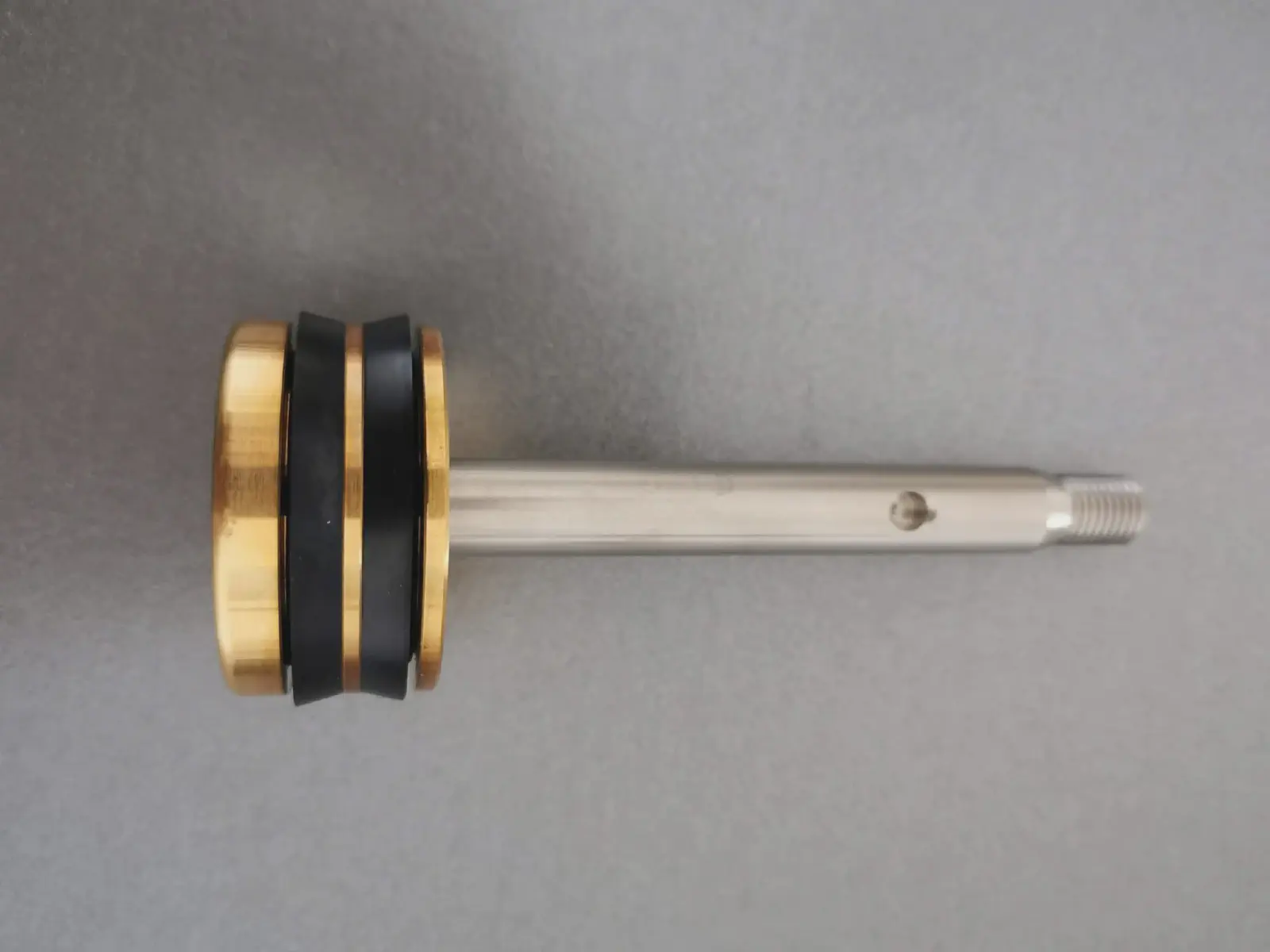 The brass piston is already assembled (a good thing since installing the seals yourself can be tedious).