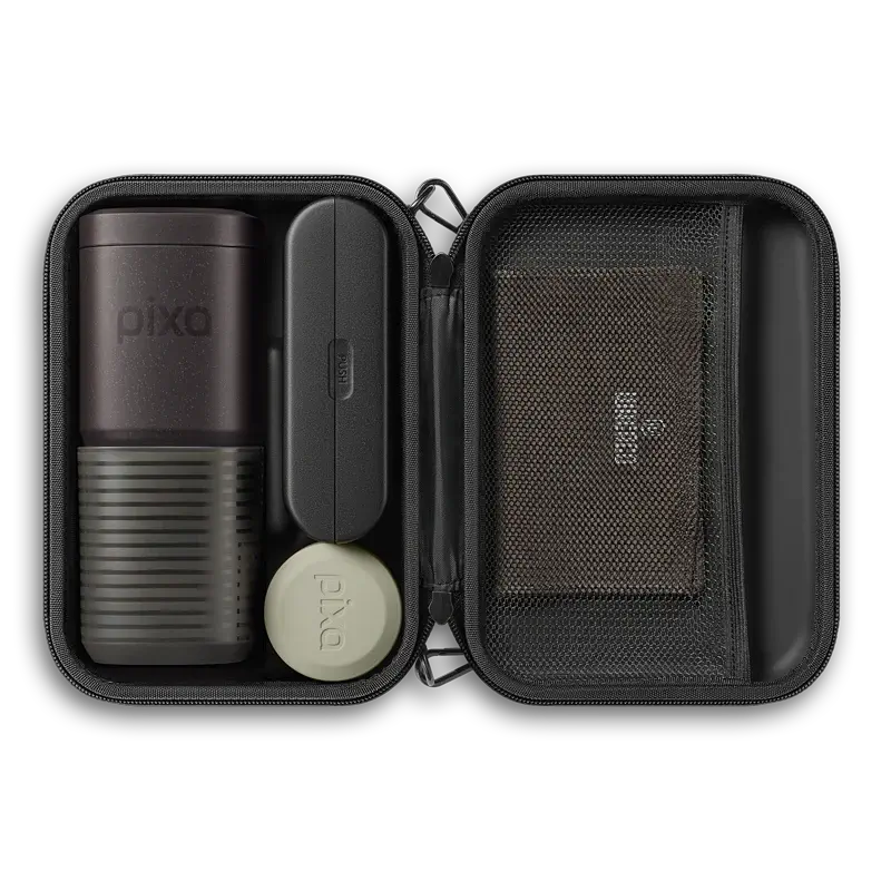 La Wacaco Pixapresso dispose de deux récipients : l’un pouvant se ranger dans le réservoir, et l’autre servant de cache de protection.