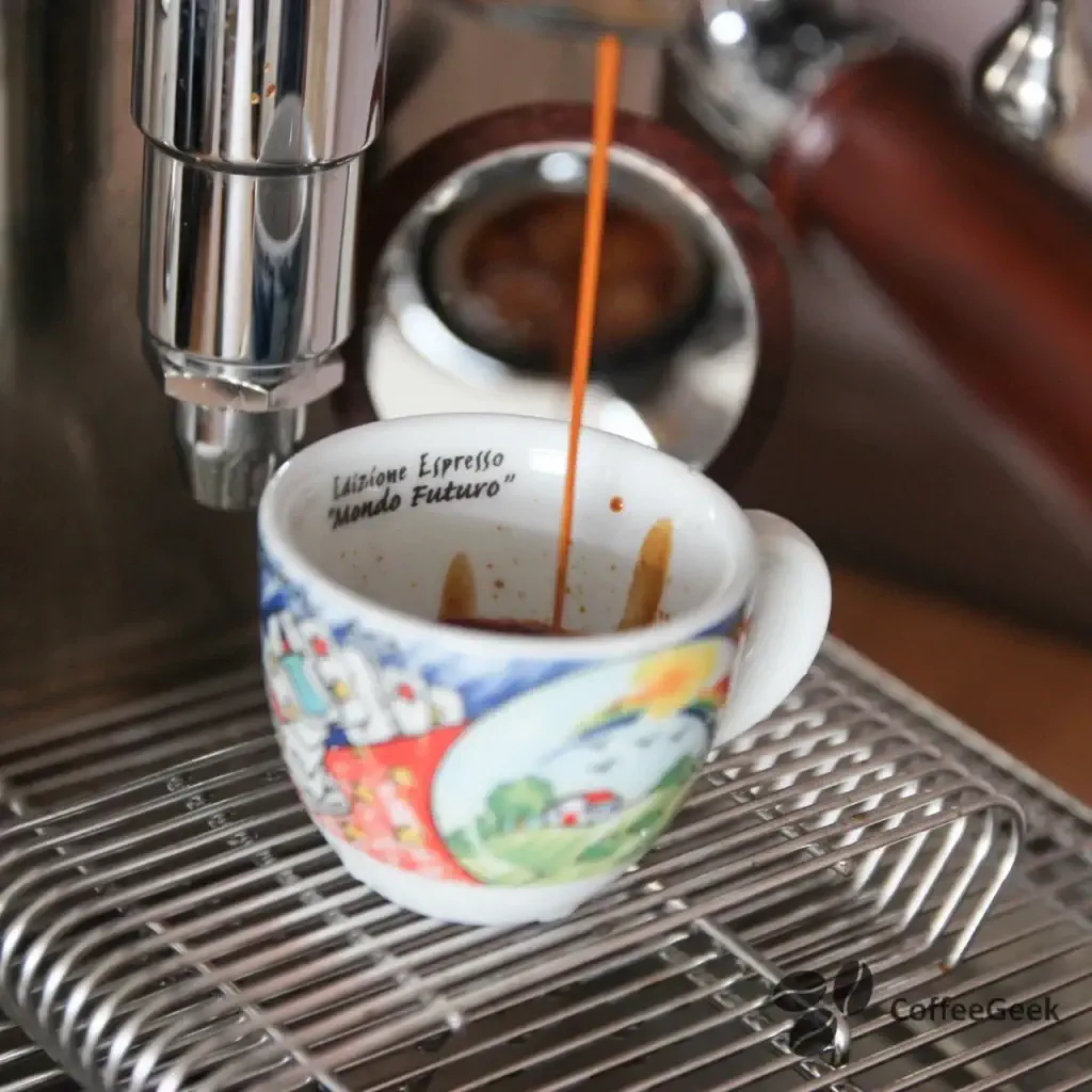 抽出は25秒で、9バール(私のLelit Mara Xにはフローコントロールがあります)、カップには40mlのコーヒーが入ります。以下は、抽出のさまざまな瞬間の画像です。