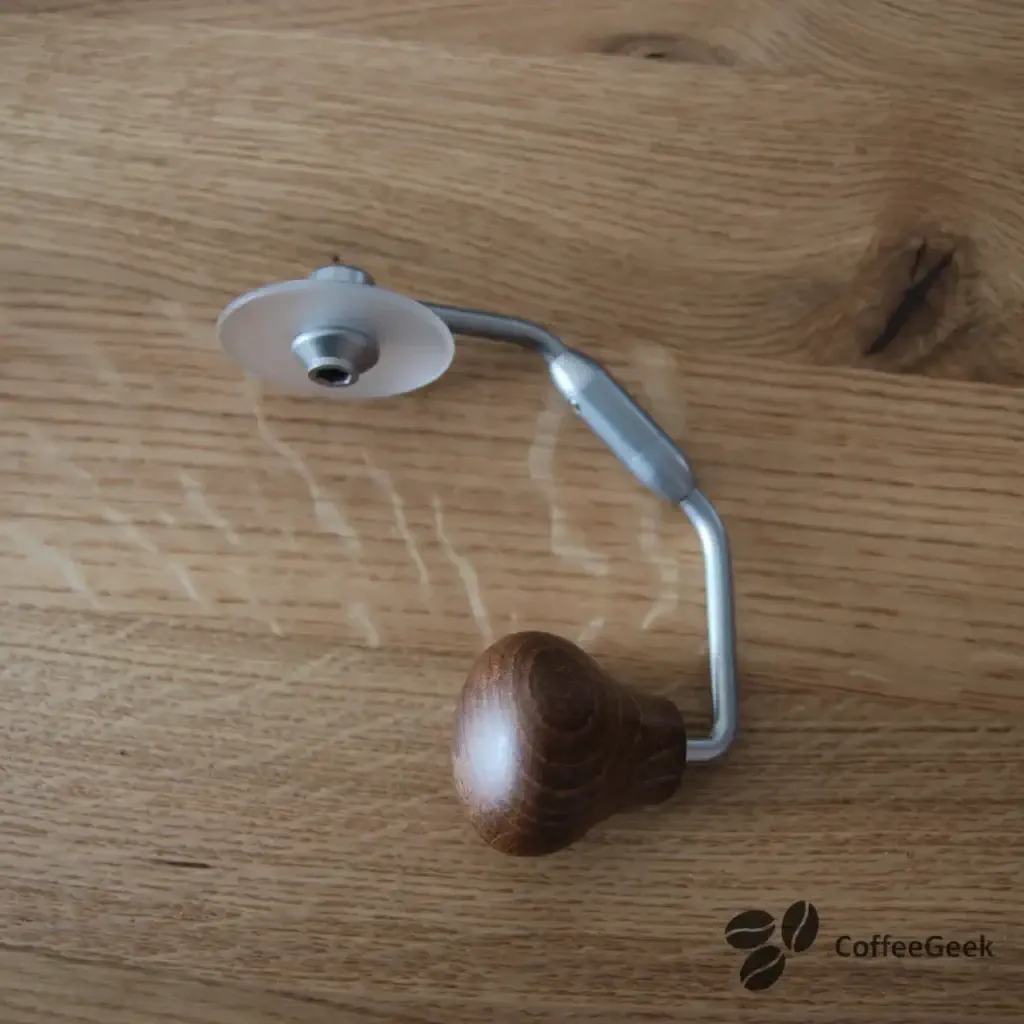 - 刃のサイズ:大きな刃(47-48 mm)は挽き時間を短縮します。例えば、小さな刃(38-40 mm)では、手挽きに約1分30秒かかります。47-48 mmの刃では、16 gのコーヒーを挽く時間は約40秒です。