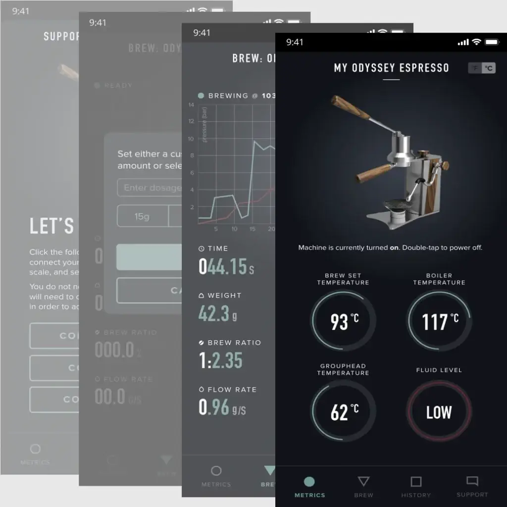アルゴスは、ダイヤルで操作される精密なPID制御を搭載し、一定の熱安定性を保証します。Odyssey Espressoアプリケーションにより、リアルタイムで以下を追跡できます: