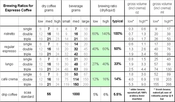 | リストレット | > 60 % | 非常に濃縮、強烈、シロップのような質感 |